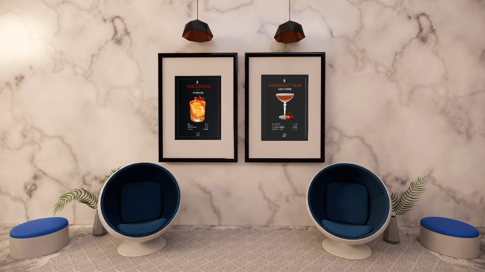 Chaque motif est sublimé par une impression au dos d’un verre acrylique de 4 mm, renforcé par des films blancs et noirs qui accentuent la profondeur.